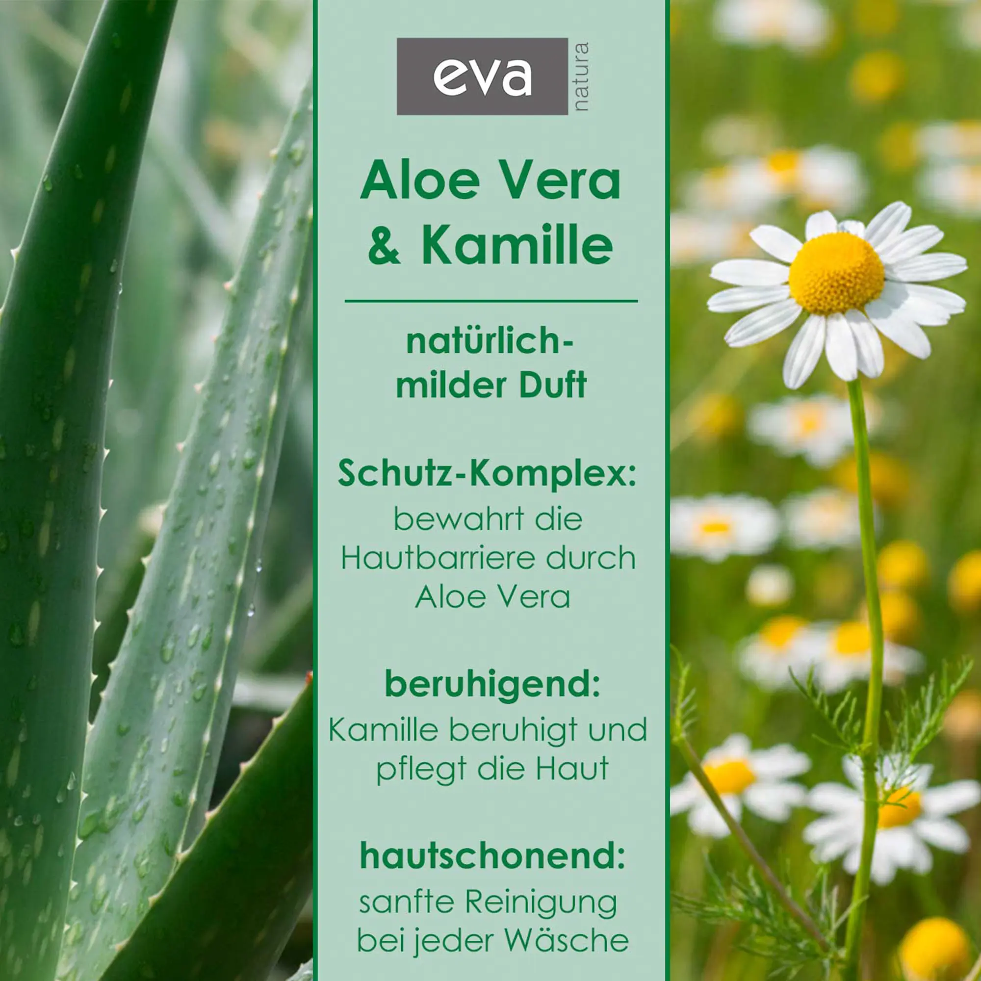 Die Eva Natura Flüssigseife mit Aloe Vera & Kamille bietet eine hautschonende Reinigung für die tägliche Anwendung. Die enthaltenen Pflanzenextrakte aus Aloe Vera und Kamille sind bekannt für ihre beruhigenden und pflegenden Eigenschaften. Sie helfen, die Haut zu schützen und gleichzeitig vor dem Austrocknen zu bewahren – auch bei häufigem Händewaschen.