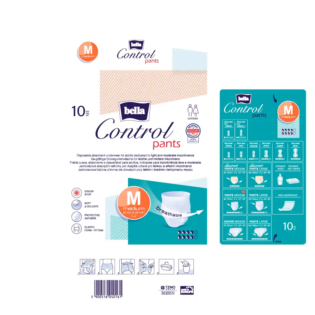 Die bella Control pants M bieten zuverlässigen Schutz und höchsten Tragekomfort für Menschen mit leichter bis mittlerer Inkontinenz. Diese saugfähige Einwegunterwäsche kombiniert Diskretion mit einem angenehmen Tragegefühl – ideal für den Alltag und unterwegs.