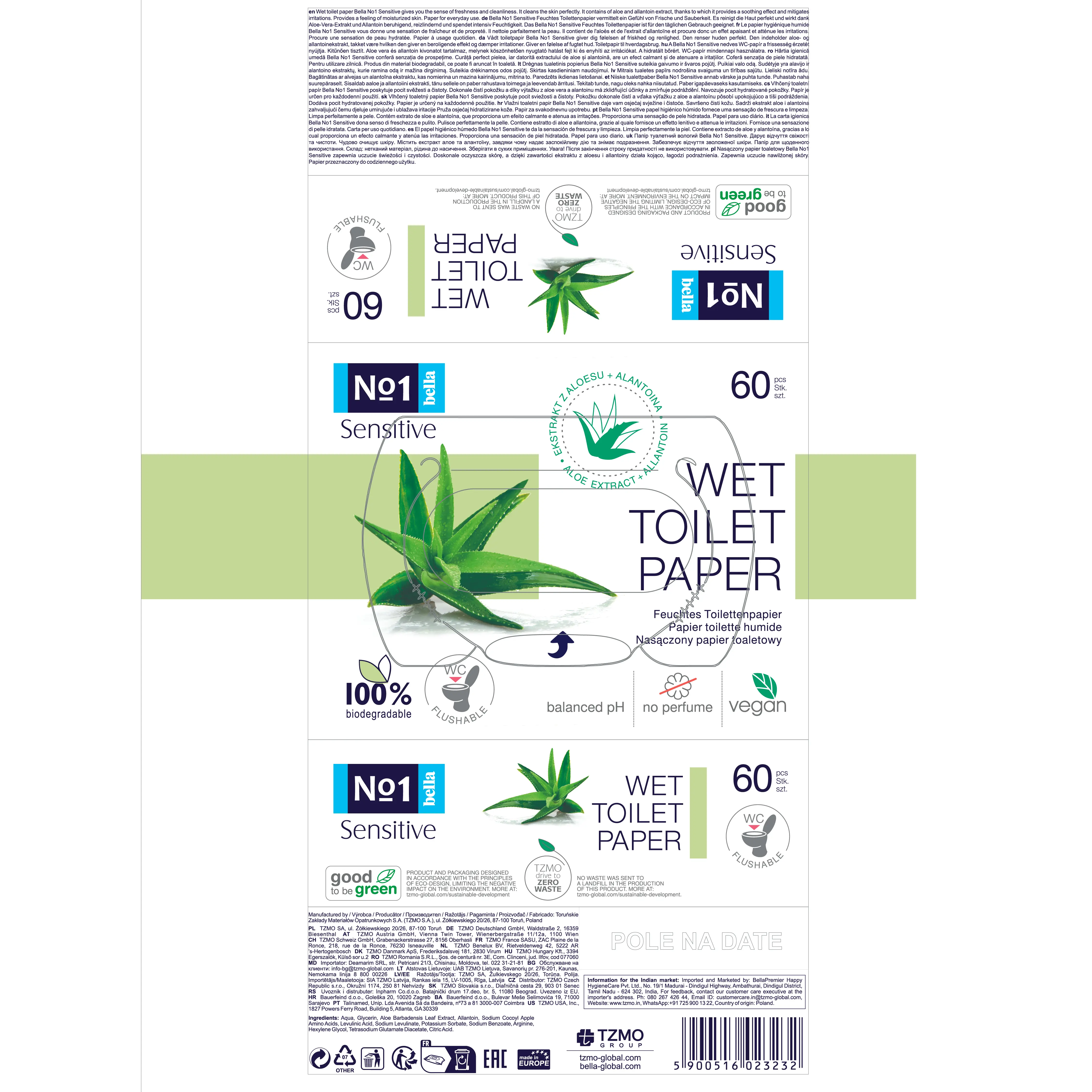 Erlebe jeden Tag ein Gefühl von sauberer Frische mit dem bella No.1 feuchten Toilettenpapier. Angereichert mit feuchtigkeitsspendendem Allantoin und beruhigendem Aloe-Extrakt, sorgt es für eine sanfte und gründliche Reinigung.