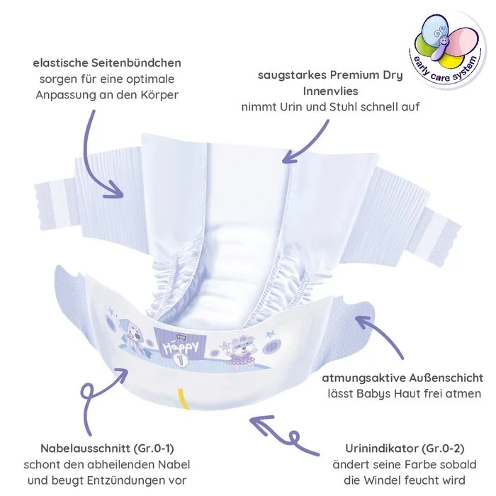 - Perfekte Passform für Neugeborene: Die Windeln der Größe 1 sind speziell auf die zarte Haut und den empfindlichen Körperbau von Neugeborenen abgestimmt. Mit der innovativen Flexi Fit Technologie bieten die Windeln optimalen Komfort und Bewegungsfreiheit.
