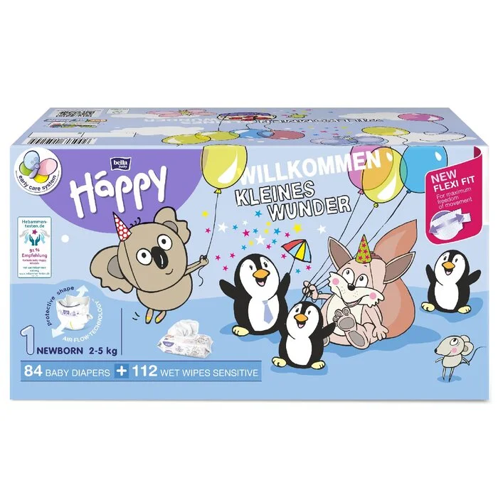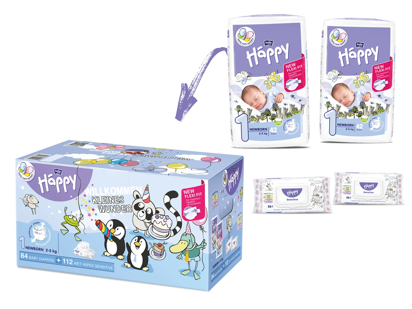 Das bella baby Happy Willkommenspaket ist die ideale Wahl für frischgebackene Eltern oder als Geschenk zur Geburt. Es bietet nicht nur 84 Babywindeln, sondern auch die sanften Feuchttücher für eine vollständige und praktische Erstausstattung. Bereite den Eltern und dem kleinen Baby eine Freude mit einem sinnvollen und liebevoll gestalteten Geschenk!