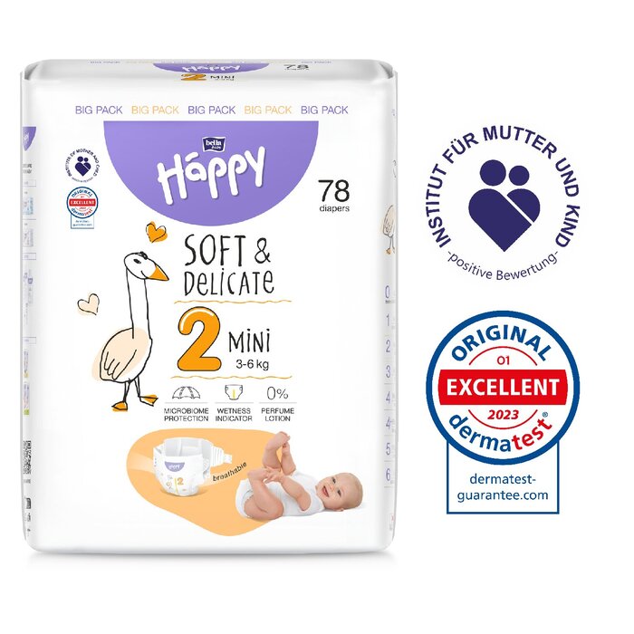 Unsere neuen bella baby Happy Windeln Soft & Delicate haben nicht nur ein neues Design, sondern sind zudem super weich und besonders für die empfindliche Haut Deines Babys geeignet. Der Nabelausschnitt an den Vorderseiten der Windeln Größe 0 und 1 stellt sicher, dass der Bauchnabel ganz ohne zusätzliche Reizungen verheilen kann.