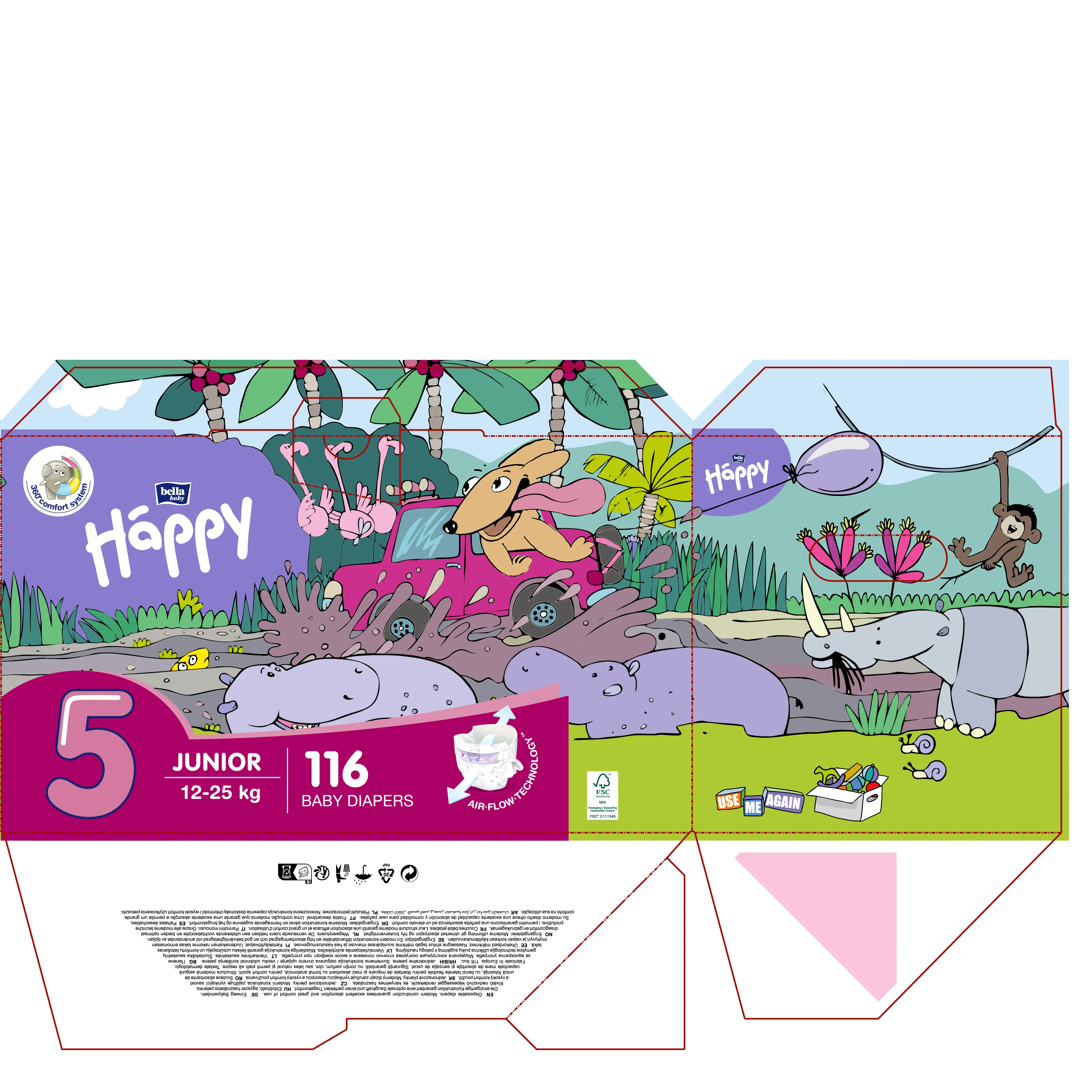 Happy safe way - Windeln ohne Parfüm, Chlor oder Latexelemente, dermatologisch getestet und somit besonders hautfreundlich.
