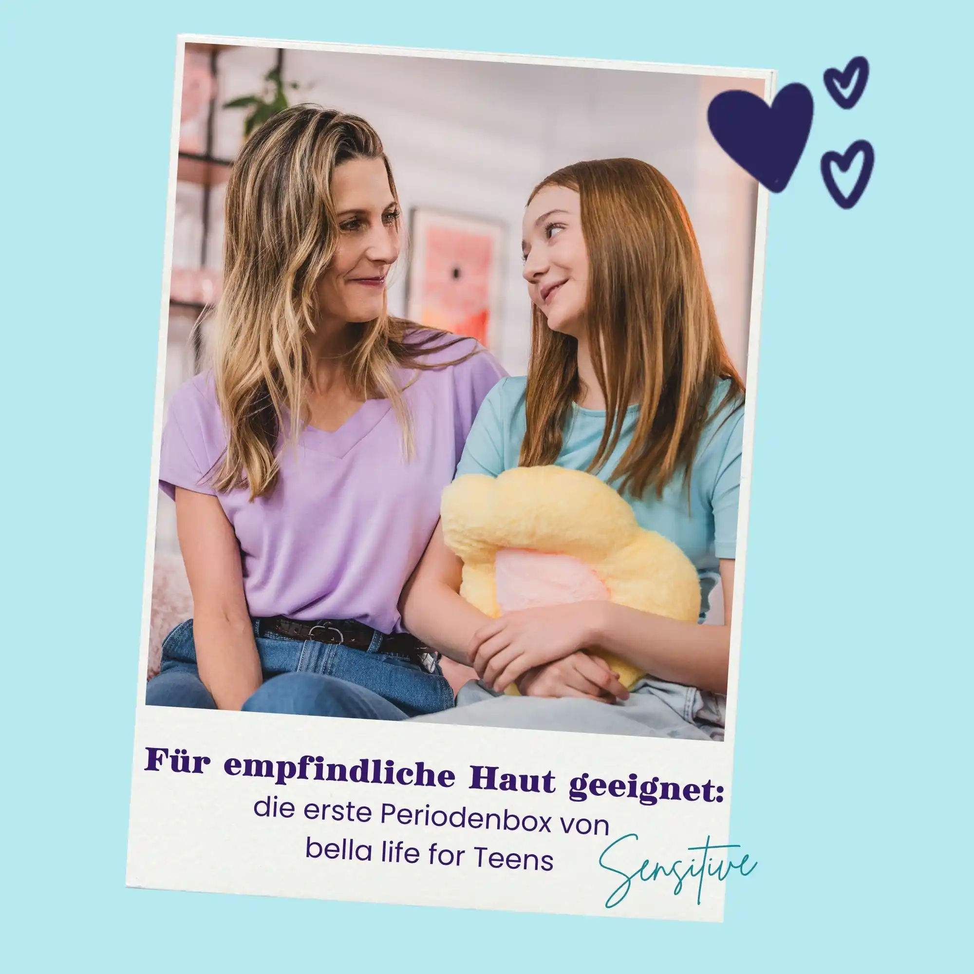 Egal, ob es schon soweit ist, oder ob du gerade erst die ersten Anzeichen bemerkst – die bella life for Teens Erste Periodenbox kann dir etwas Last von den Schultern nehmen. Denn das Set beinhaltet alles, was du für den Start mit deiner Periode benötigst. Die Binden für den Tag und die Nacht sowie die Slipeinlagen schützen dich sanft und passend zu jeder Zeit. Die Hygieneprodukte sind für sensible Haut geeignet. Das beweist auch das Siegel „Sehr gut“ von der Stiftung Warentest. Sie sind atmungsaktiv und frei von Parfüm. So bist du nicht nur während deiner Periode jederzeit komfortabel und sicher geschützt.