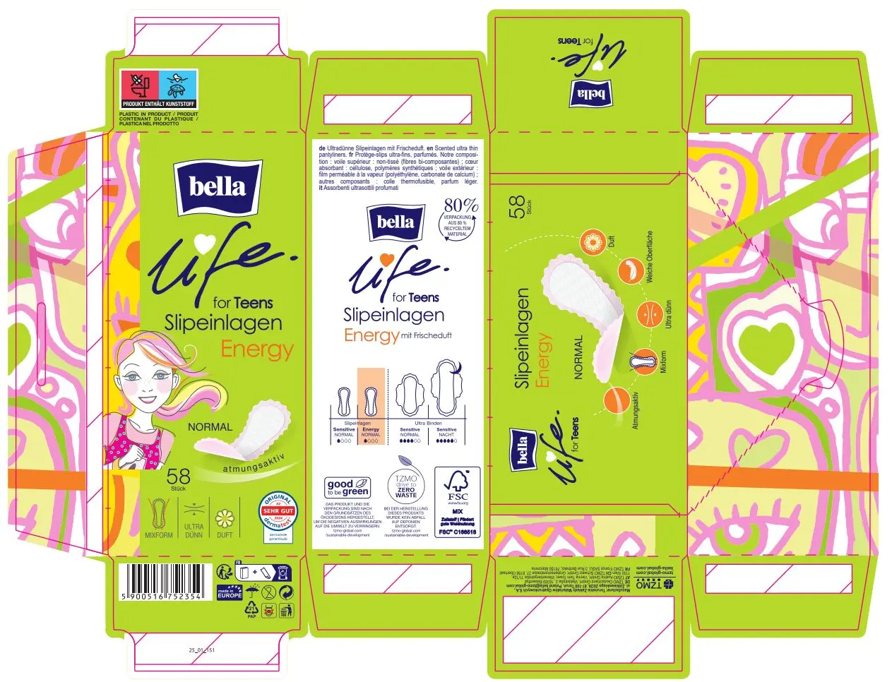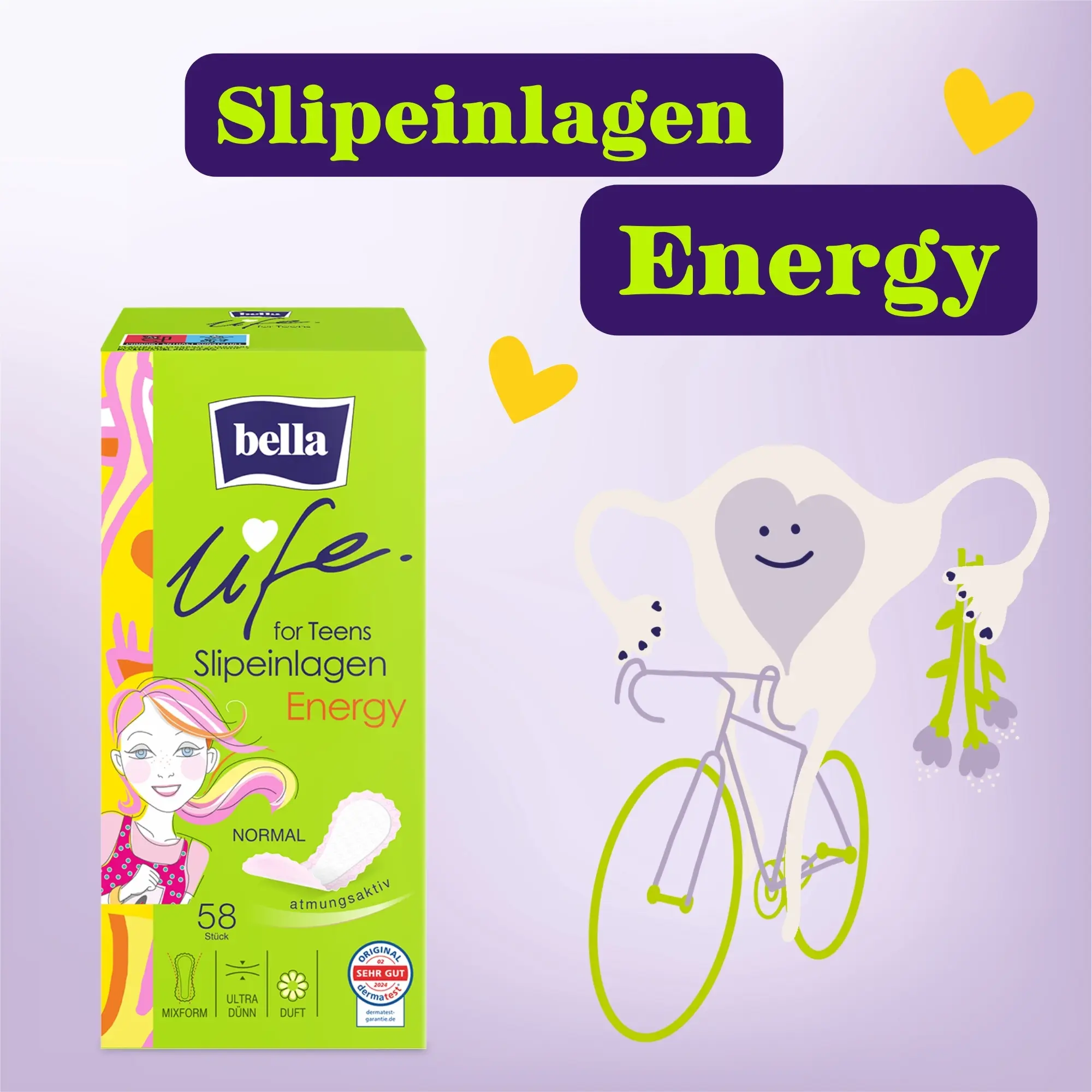 Mit den bella life for Teens Slipeinlagen Energy startest du selbstbewusst und voller Energie in den Tag – egal, was du vorhast!