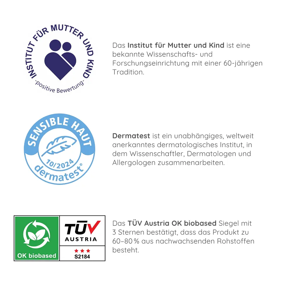 Die atmungsaktive Struktur lässt Luft zirkulieren und unterstützt ein angenehmes Hautklima. Dermatologisch getestet und parfümfrei – ideal für sensible Haut nach der Geburt.