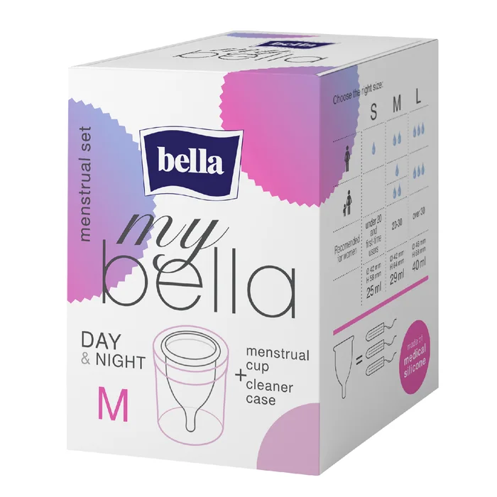 Ideal nicht nur für unterwegs und auf Reisen, sondern auch im Alltag: Der my bella Periodencup mit dem praktischen Behälter, der die Sterilisation, die Aufbewahrung und die Desinfektion nach der Menstruation kinderleicht macht. Mit der Tasse sparst du nicht nur Geld für immer stetig neue Periodenprodukte, sondern schonst auch die Umwelt. Der bequeme Cup hält auch bei Sport und beim schwimmen sicher. Dabei ist die Menstruationstasse aus medizinischem Silikon hergestellt, das hypoallergen, biokompatibel, latexfrei und verträglich ist. Das bestätigen dermatologische Tests. Dass jede von uns die passende Größe findet, garantieren die drei erhältlichen Größen. Die Tasse kann dem Behälter vor dem ersten Einsetzen, sowie nach der Menstruation gereinigt werden. Während der Periode maximal 12 Stunden eingesetzt lassen. Danach das Blut in der Toilette entsorgen und vor dem erneuten Einführen der Periodentasse reinigen.